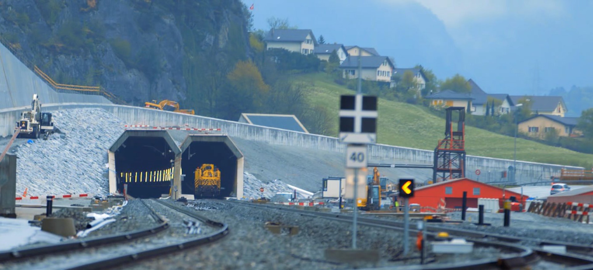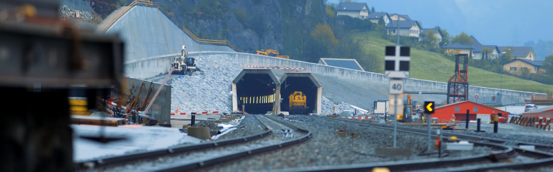 Special features: The project involved the installation of 2 x 57 km of slab track in the tunnel with 8 high-speed switches and 31 km of ballast track with 30 switches in the open section