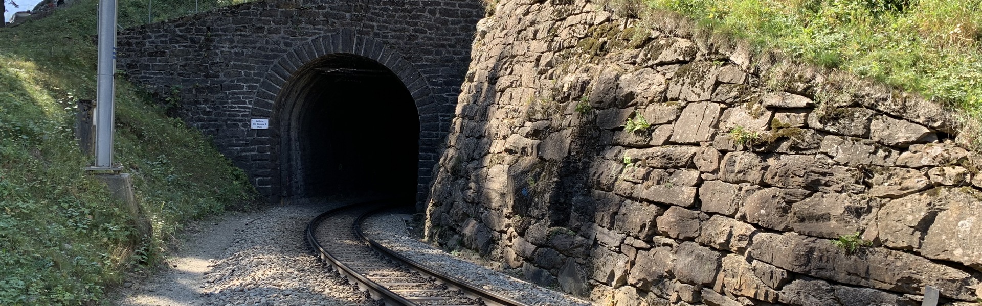 The existing natural stone vault of the tunnel will be completely demolished and widened by means of pipe umbrella tunnelling while maintaining the same alignment. The new tunnel profile will receive a foil sealing and a reinforced shotcrete inner vault.