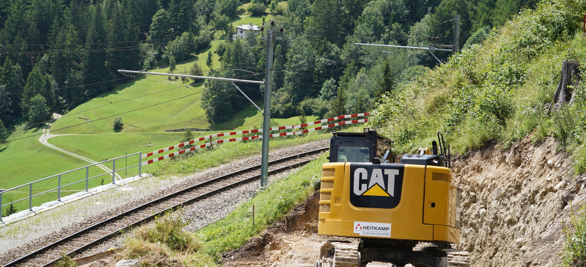 Special features: Demolition of the two portal structures and new construction with natural stone cladding; planning, production and exact laying of around 90 pieces of invert and carriageway slabs as well as planning, production and installation of an around 20m long auxiliary bridge in the area of the Cadera opening section to ensure accessibility.