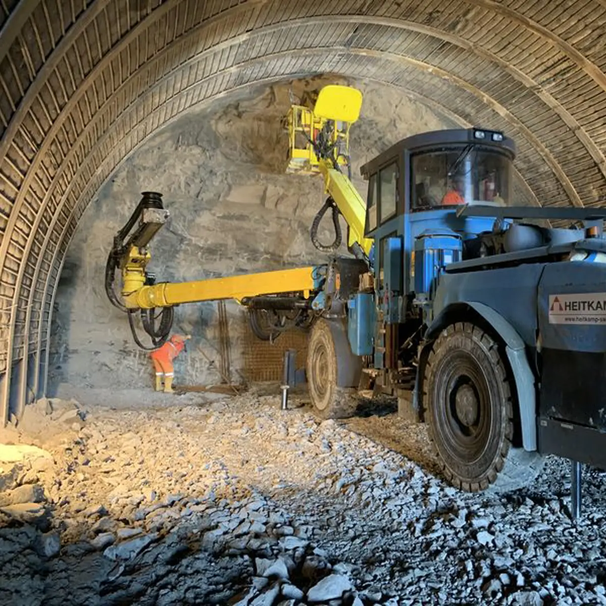 Blasting and excavation methods are usually used when the tunnel lengths are short or the rock conditions vary greatly. Conventional tunnel construction is very flexible and can be adapted to the conditions encountered at any time. In most cases, after securing the tunnel with shotcrete and anchors, an inner shell made of in-situ concrete is installed.